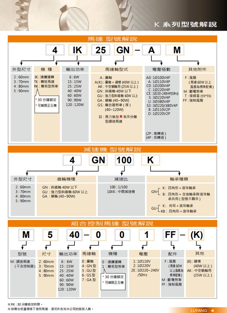 型號 | 機種 | 框號 | 馬達軸型式 | 對應電壓 |