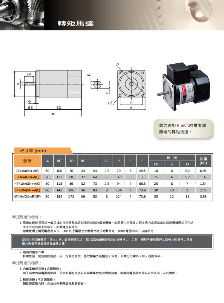 2TK3A(GN) | 轉矩馬達 | 60mm | 圓軸 / 斜齒軸 | 單相電壓 |