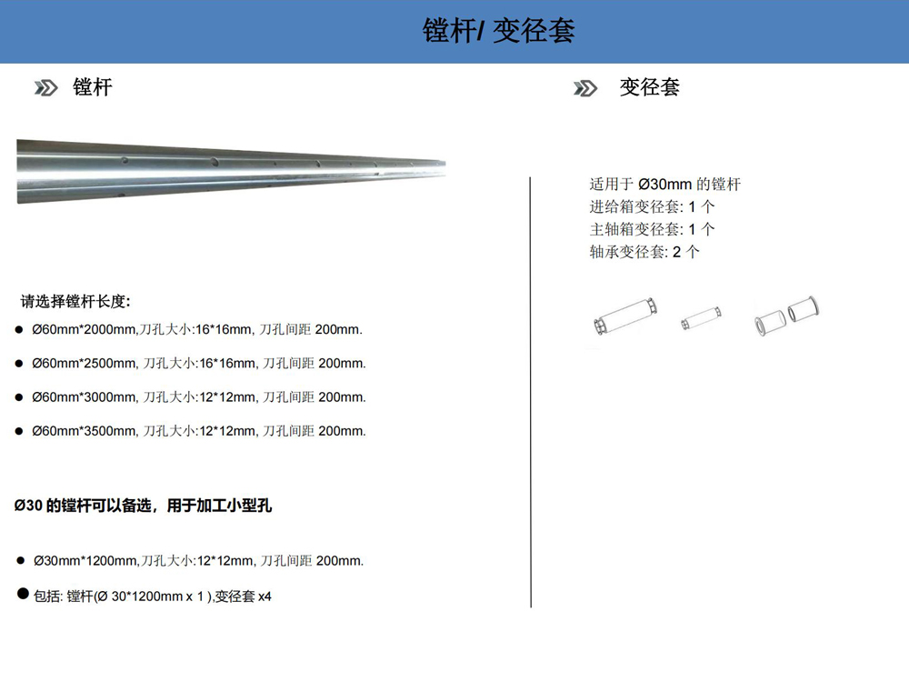 镗杆长度 | 2000/2500/3000/3500/4000/4500mm/5000mm (?60mm) | ||