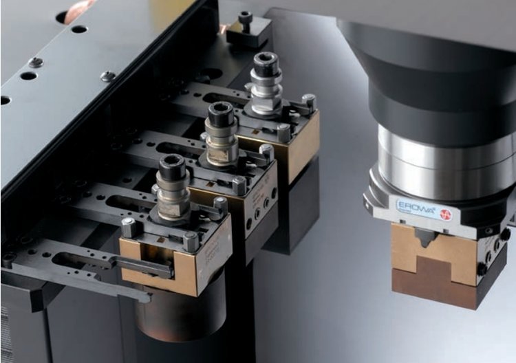 给加工槽配置选配件“梭式 ATC”,可以自动进行需要多根电极的高级加工、微细精密