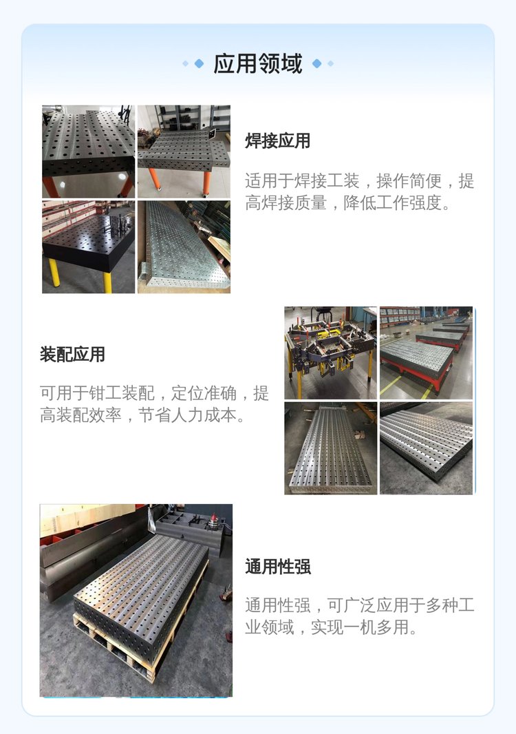 4、三维柔性组合焊接平台使用时要轻拿轻放工件,不要在铸铁平板上挪动比较粗糙的工件,以免对铸铁平板工作面造成磕碰、划伤等损坏。