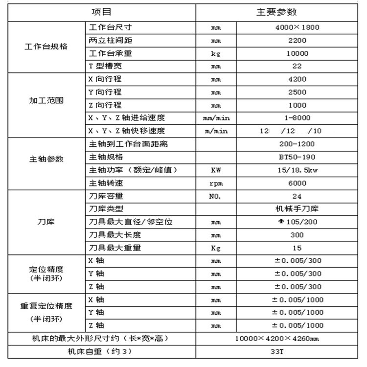 X/Y/Z 轴行程 | 4200/3150/1000mm | ||