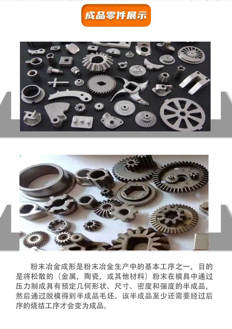 粉末冶金成型液压机主机有四柱结构和框架结构供选择,配备移粉和液压比例浮动成型技术,使制品成型密度得到有效控制。装料、成型、脱模三位置的机械挡块定位及无级调整机构,确保了制品几何尺寸的稳定可调。
