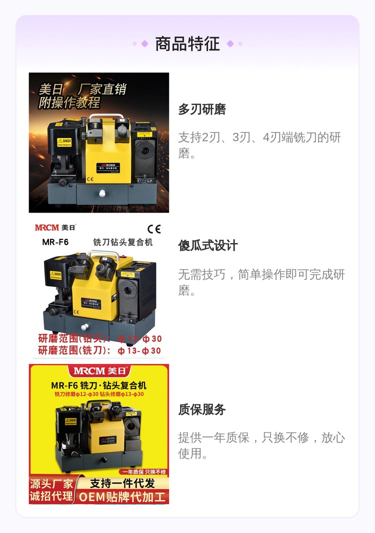 美日MR-F6铣刀钻头复合研磨机专业工具操作简便