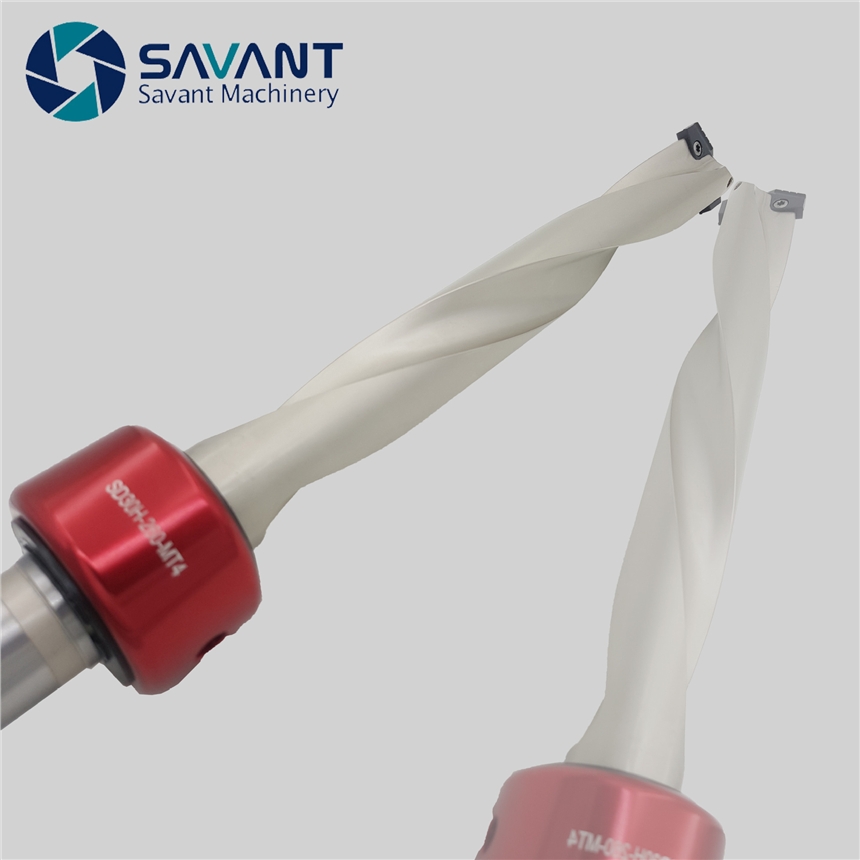 Savant铲钻刀片具有自定心功能,双刃对称均匀受力,适合加工深孔。长径比在5倍径以内的,优先选择Savant快速钻(U钻),超出5倍径推荐使用Savant铲钻。
