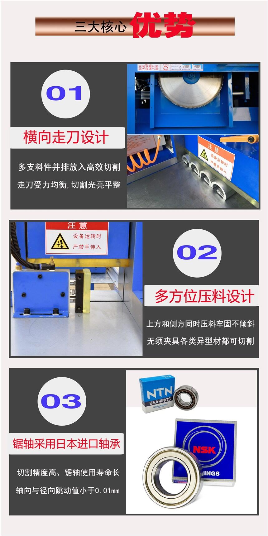 产品特点:1、手动送料、自动压料、自动切割、自动喷雾冷却锯片;