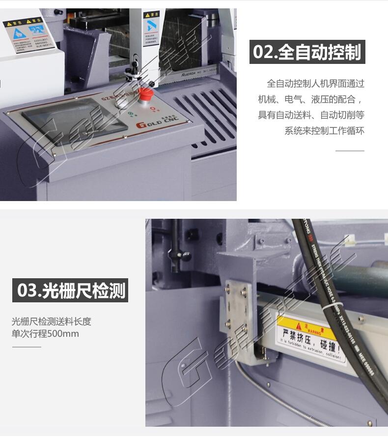 4、数控带锯床适用于大批量同规格材料锯切,性能稳定,效率高。可取代于普通锯床的3倍工作效率。