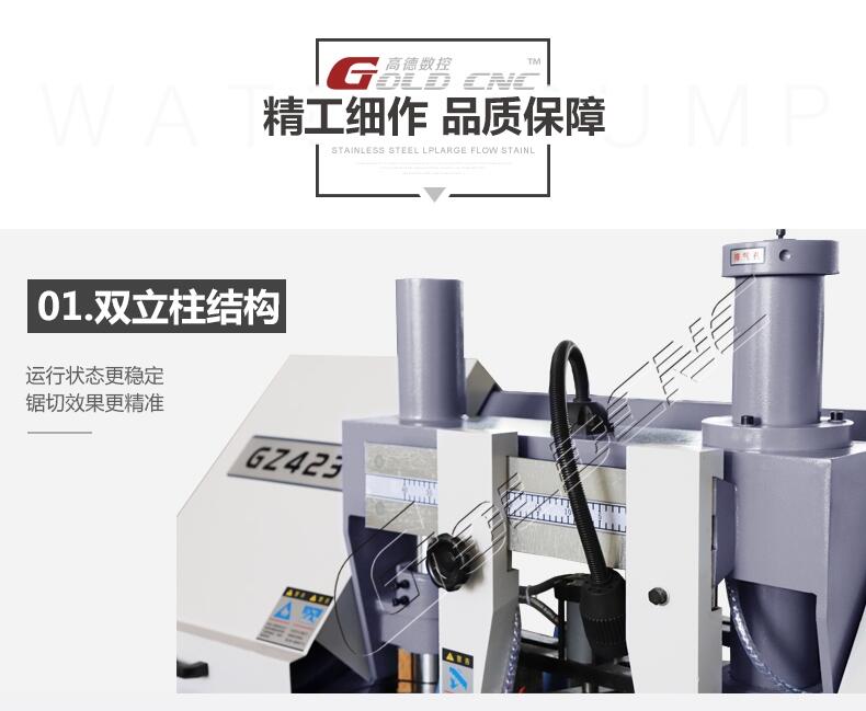 3、由于其切削工具,采用进口薄片的双金属带锯条,因此,切口窄,耗材少,所需动力小,是大、中型企、事业单位切割大型钢胚、大型模具钢胚的一种具有显节材又节能的高效切割工具。