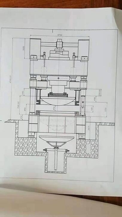 滕州百兴机械 液压封头拉伸机 型号:YL27-4500t 液体工作力:25Mpa 开口高度:1500mm 2018年5月制造 工作台有效面积:3600×4000mm 主缸缸径:1150mm