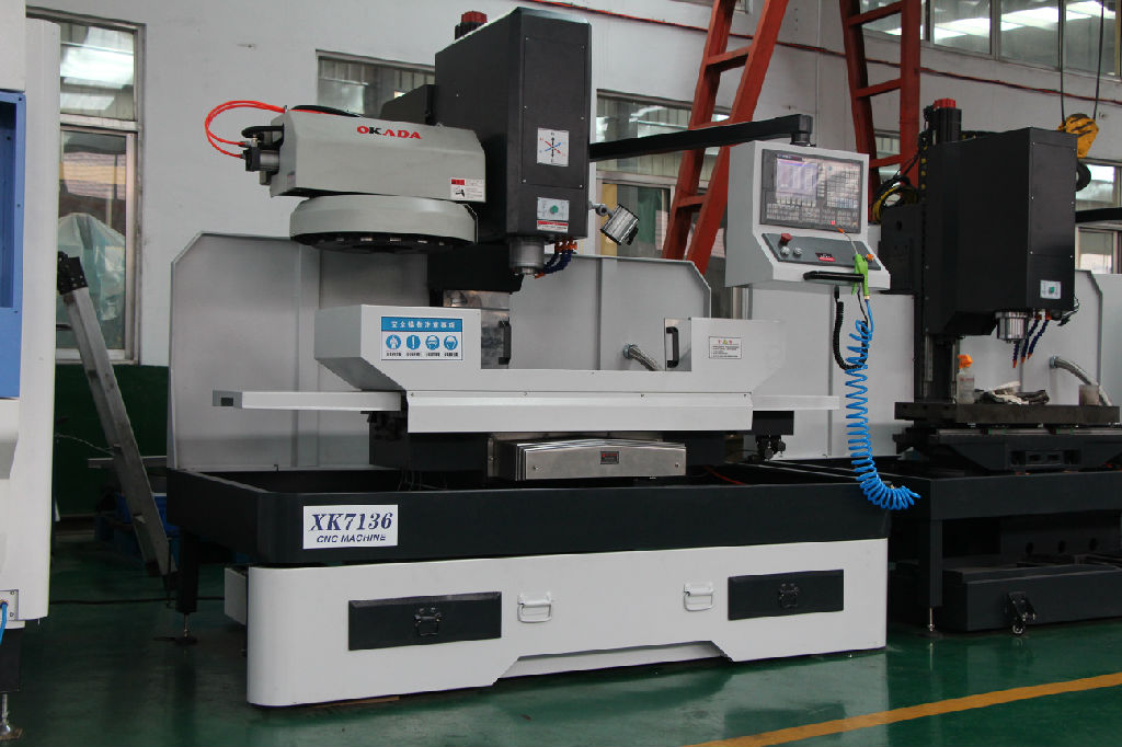 3.三轴采用钢性极强的矩形导轨,可承受重切削,工作台精密研磨,导轨所有不可滑动面均经过超高频淬火处理,大大增强了表面硬度;所用导轨滑动面镶嵌进口导轨软带大大增加了导轨的耐磨性并提高了机床的使用寿命。