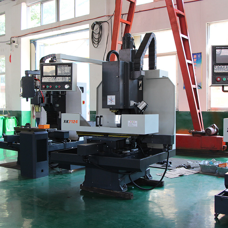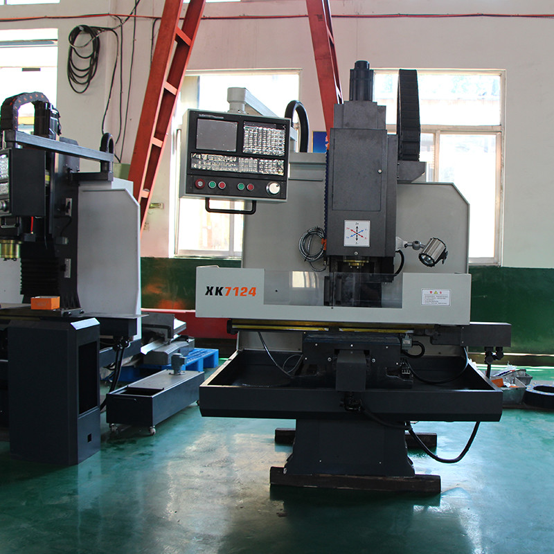 数控机床xk7124系列结构及外形优化设计,紧凑合理、刚性加强。能够实现对各种盘类、板类、壳体、凸轮、模具等复杂零件的加工,可完成钻、铣、攻丝等多种工序,适合于批量产品的生产,能满足对中小型工件的钻、攻、铣工序的加工。