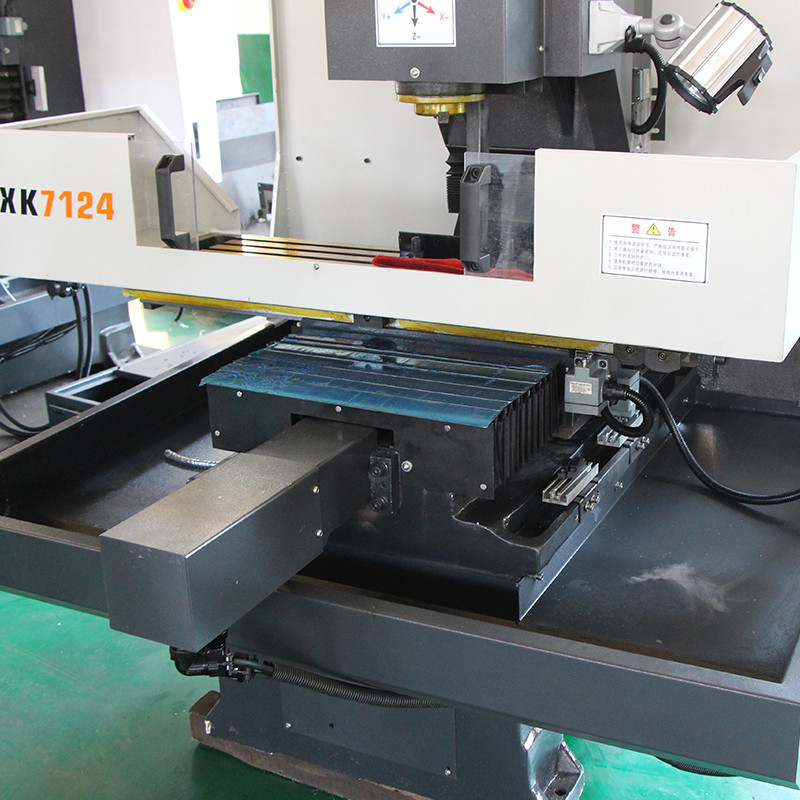 数控机床xk7124是集精铣、钻孔、攻丝功能的经济型数控机床。x、y、z三轴伺服、半闭环、点位控制立式数控钻铣铣床。