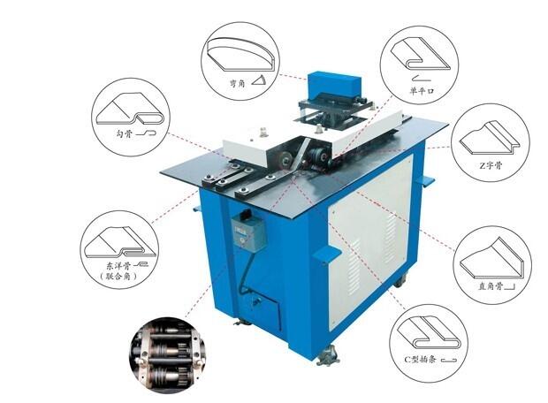 风管咬口机,风管辘骨机。是一种多功能的机种,主要用于板材连接和圆风管闭合连接的咬口加工。可以满足风管制造的各种不同形状的骨型。加工板材厚度为0.5-1.2mm。机器的所有齿轮、轴、轧辊均选用优质钢材,经过严格的热处理工艺,保证机械耐用,质量稳定,具有易于安装、外型美观,机械原理合理,移动灵活、操作使用方便等特点,能满足用户不同的要求。咬口机适用于通风、空调、净化等装置的风管制作,根据要求,可制作成各种方形、矩形的薄板风管,是各种钣金加工、风管制作等不可缺少的机械化设备。