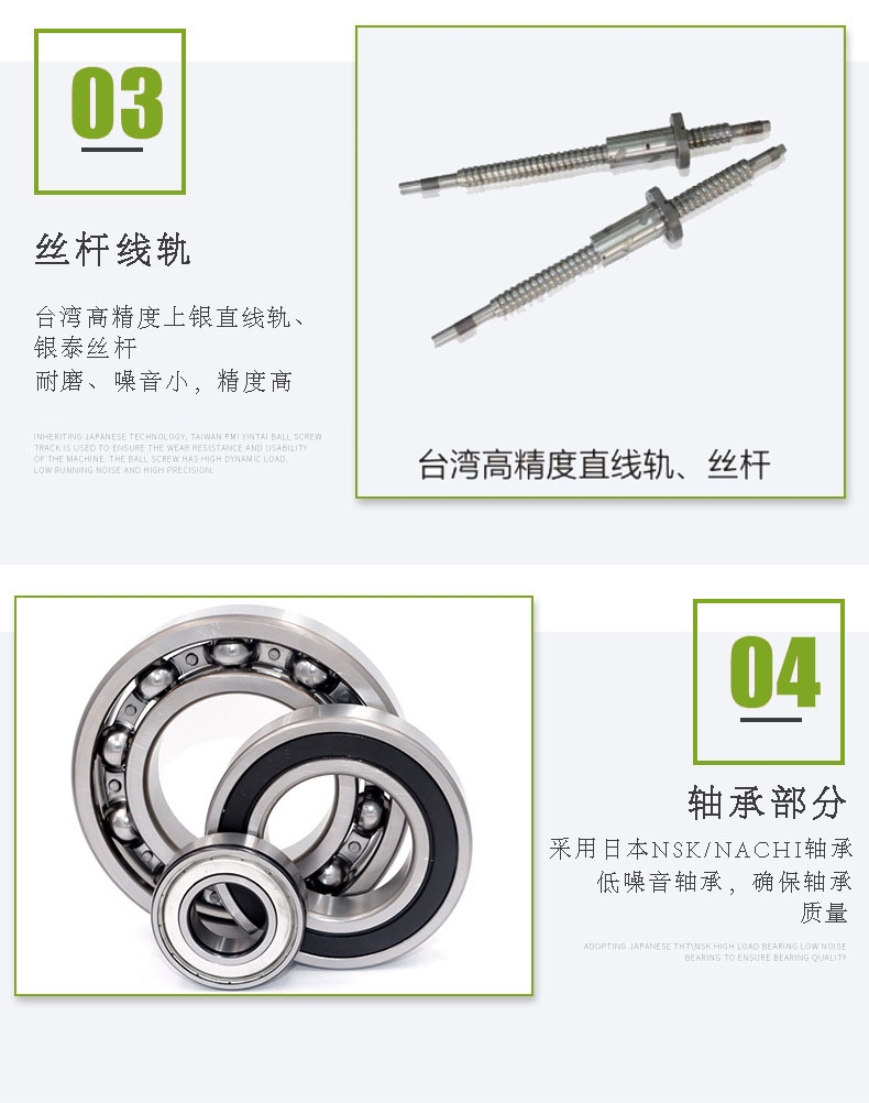 2、主要配件均采用日本台湾进口,精度更高,寿命更长