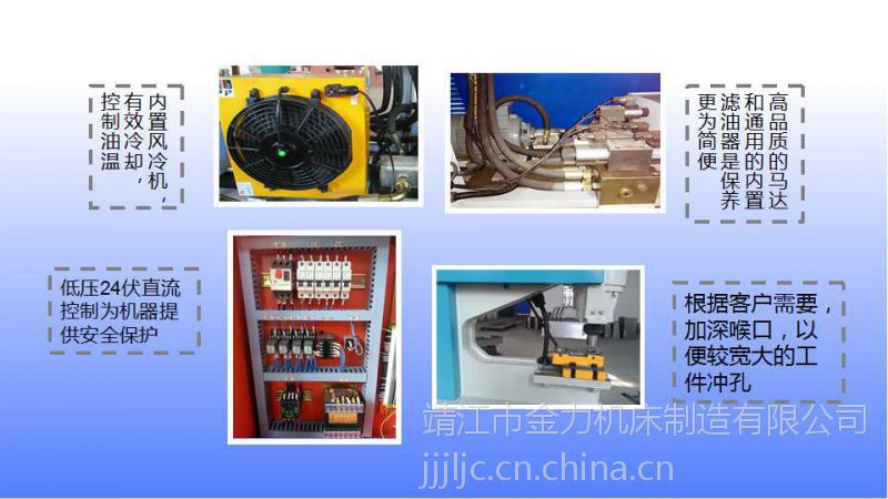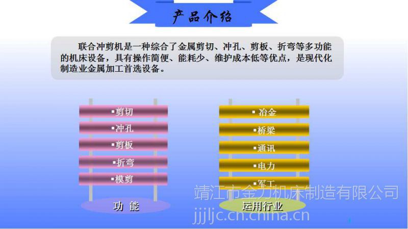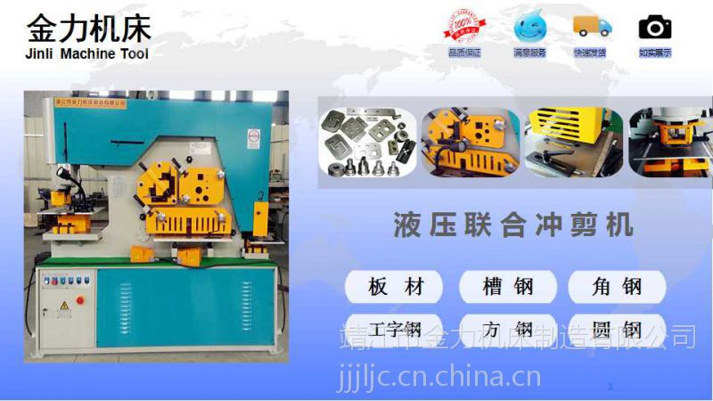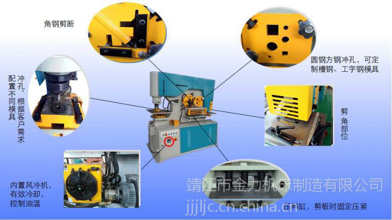 采用液压传动是目前国内联合冲剪机产品,能对板材、方钢、圆钢、角钢、槽钢、工字钢进行剪切、冲孔、模剪,领配备剪切挡料装置。