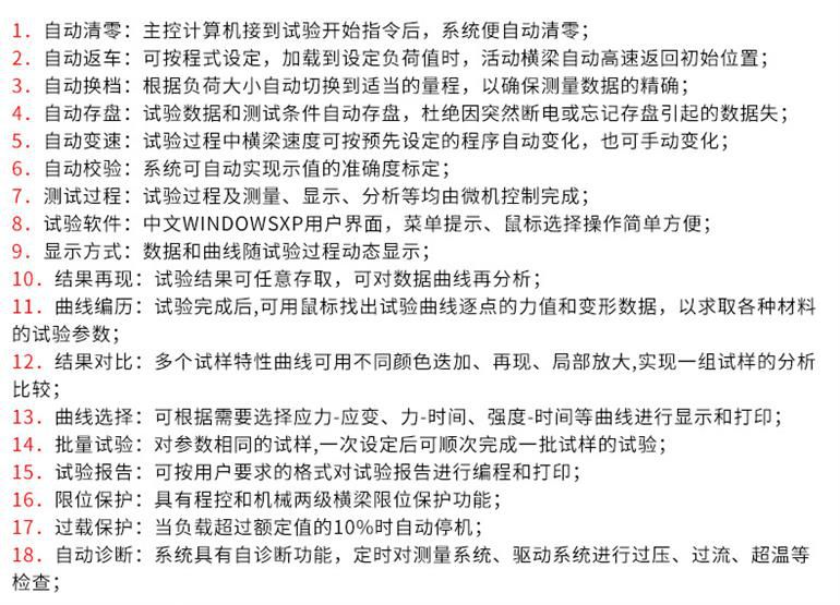 该机型在整个试验过程中采用全数字化控制,采用交流伺服控制系统,具有力、变形、速度、位置等多种控制方式。操作方便,精度高。速度范围宽,采样频率高,可选配多个传感器和夹具。以质量求生存,以信誉求发展是德迅检测的行为准则,“稳定的产品质量、先进的技术让您满意的服务”是我们的质量目标,以满足客户需求为发展动力,以产品科技创新为发展手段,我们本着“为客户提供一流的检测仪器”为己任,为您的科研检测保驾护航。