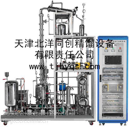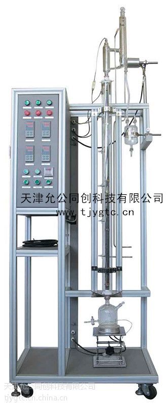 玻璃双层循环塔釜、塔节、回流分离器、塔顶冷凝器、产品冷凝器、温控器、回流比控制器、接收器等。本装置的釜加热、塔底、塔中、塔顶温度的控制与测试均采用ai智能控制装置自动控制并自动数字显示。