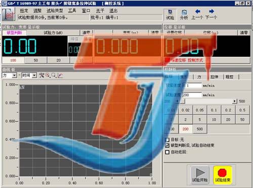 10、 显示方式:数据和曲线随试验过程动态显示;