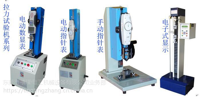 电动拉力试验机由电动拉力机底座与指针拉力计(也可配数显拉力计)构成,主要用于测试端子及金属线的拉断力。拉力的值控制在50kg以内。样品拉断后自动记忆值,拉力机的精度由拉力计的量程决定。