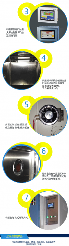本产品满足gb2423.1-2001试验a《高温试验方法》; gb2423.2-2001试验b《低温试验方法》; gb2423.3-93试验ca《恒定湿热试验方法》等国家标准,以及其它相关标准的要求。严格按gb 10592—89《高低温试验箱技术条件》、gb10586-89《湿热试验箱技术条件》进行设计制造,可进行各种高低温湿热环境试验。
