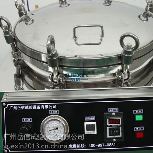 7.测试时间可设定为:0-999分钟,到达测试时间能自动停止供压,并自动排掉罐内空气,测试人员打开罐盖取出测试样品即可。