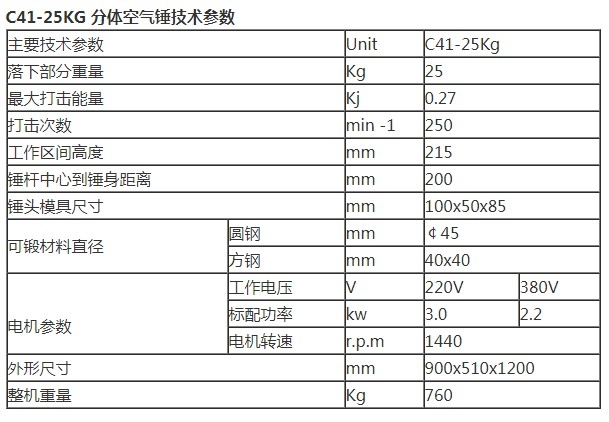 小型c41-25kg分体式打铁空气锤 两相电也能用
