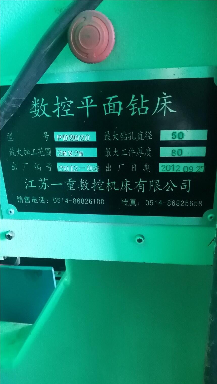 江苏一重数控龙门钻型号PD2020最大钻孔直径50mm最大钻孔范围2000*2000mm最大工件厚度80mm年代2012年,西班牙发格系统