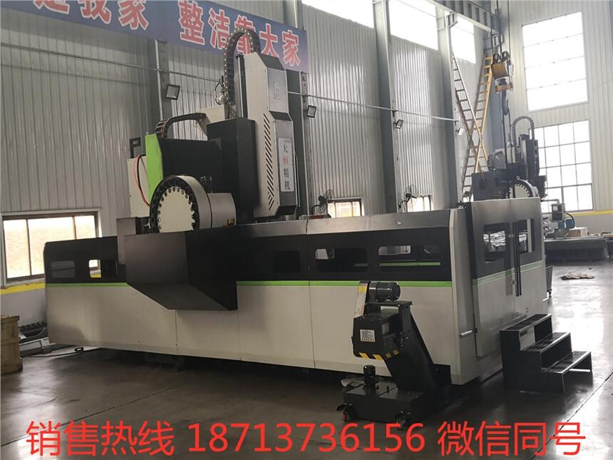 1.数控龙门铣床是集机、电、液等先进技术于一体的机械加工设备,主要用于平面、曲面和孔的加工。广泛应用于机械制造行业各种板类、箱体类、机架类等复杂零件的粗、精加工,该机床可实现立式铣头横向(Y轴)、垂直运动(Z轴)与工作台纵向运动(X轴)的三轴联动。可进行铣、镗、钻、刚性攻丝、铰孔、锪孔等多工序加工。