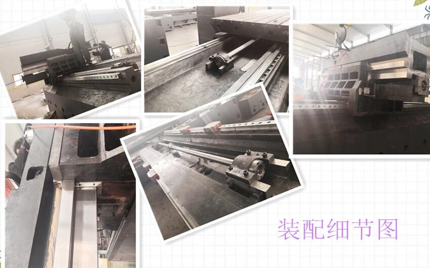 7. 整体铸造床身,床身采用高强度优质铸铁,高强型结构设计,抗震性好,龙门宽2600mm以上,采用四线规设计理念,结构强度稳定,动态精度高。