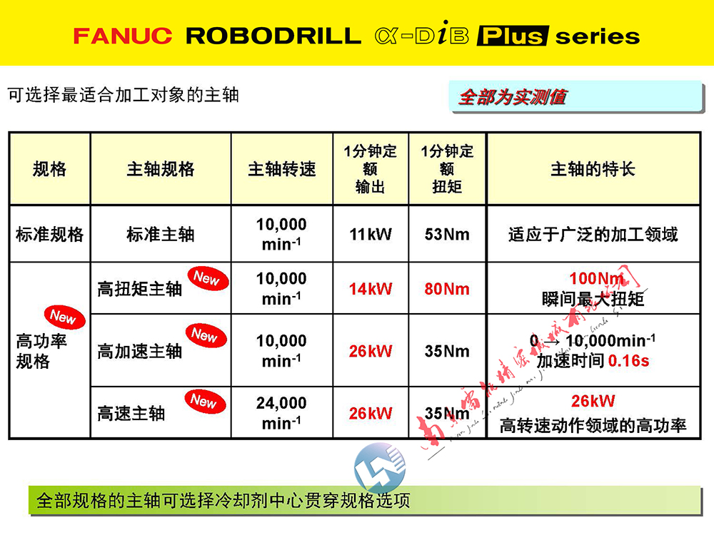 11KW(1分额定)/ 3.7KW(连续额定)标准主轴 |