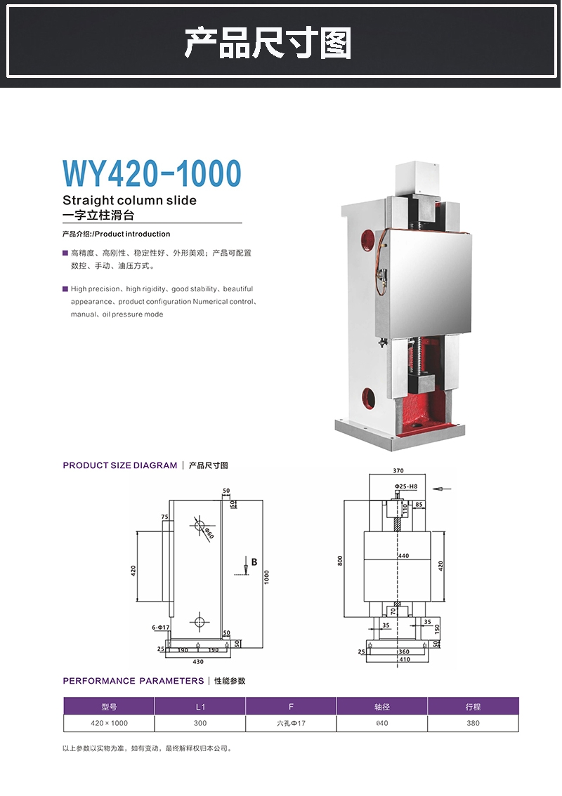 立柱数控一字滑台WY420-1000高精度铸铁直线导轨机床机械厂家销售