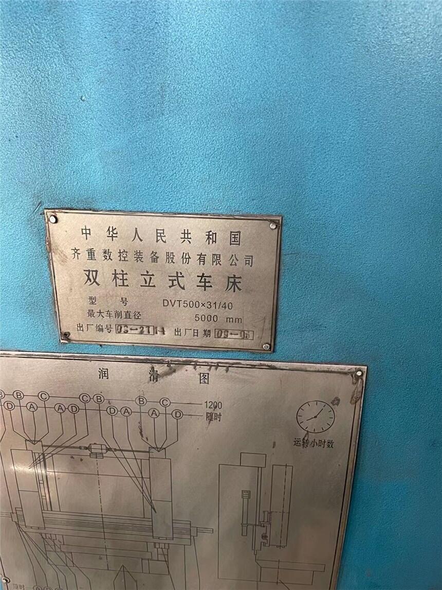 售:精品齐齐哈尔5米双柱立车型号DVT500×31/40。加工直径5米。加工高度3.15米。卡盘直径4.5米。承重40吨。西门子828D系统。主轴带编码器。安装少用
