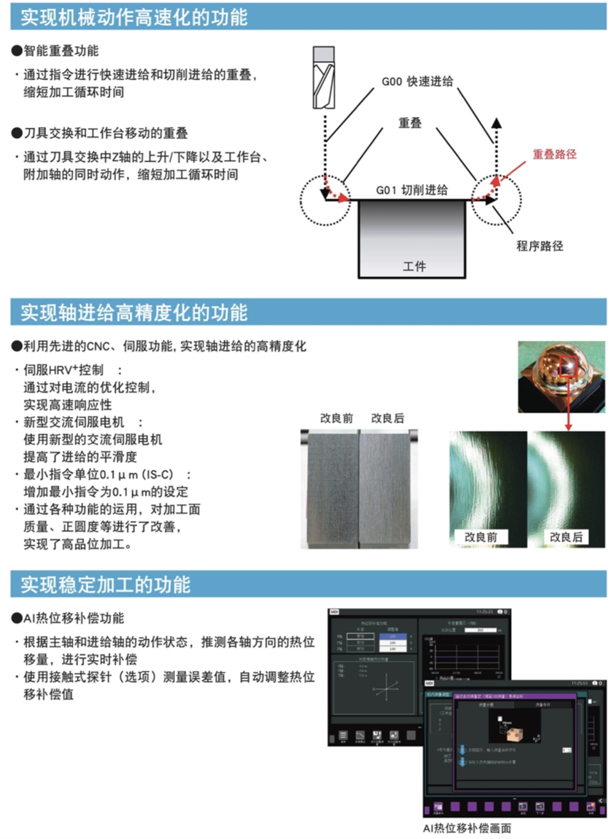 2)纳米插补,AI轮廓控制II(选购件),冲击控制(选购件),NURBS插补(选购件),纳米平滑加工(选购件),快速数据服务器(选购件)。