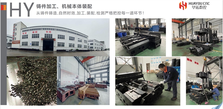 2. HY-VMC2T-500所有大型铸件都经过严格的退火处理后,再加上长期的自然时效,彻底消除内应力之后,再利用大型五面加工中心,一次装夹完成五个面的所有部位的加工。因此,加工后的零件具有极好的几何形位精度,大大提高了整机装配后的相关精度。