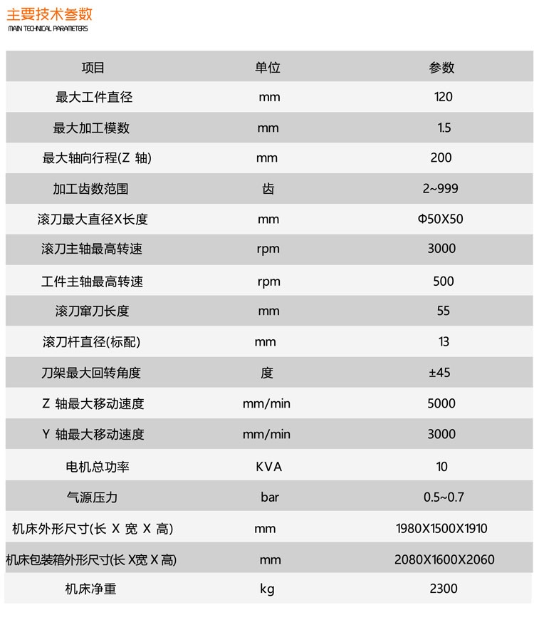 本机床为高速数控滚齿机,非常适合电动工具行业、汽车摩托车行业、仪器仪表行业、微型减速箱行业、玩具行业、渔具等行业的各种小模数齿轮大批量加工。