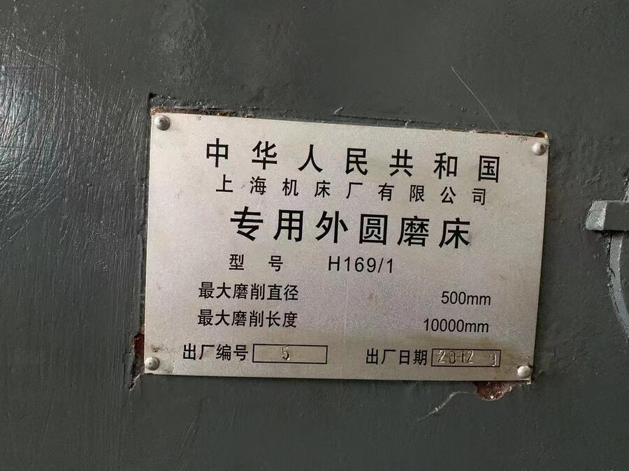 售:上海10米外圆磨床型号H169/1规格500乘以10米磨头移动,整体床身,年代2007年,导轨满花纹,