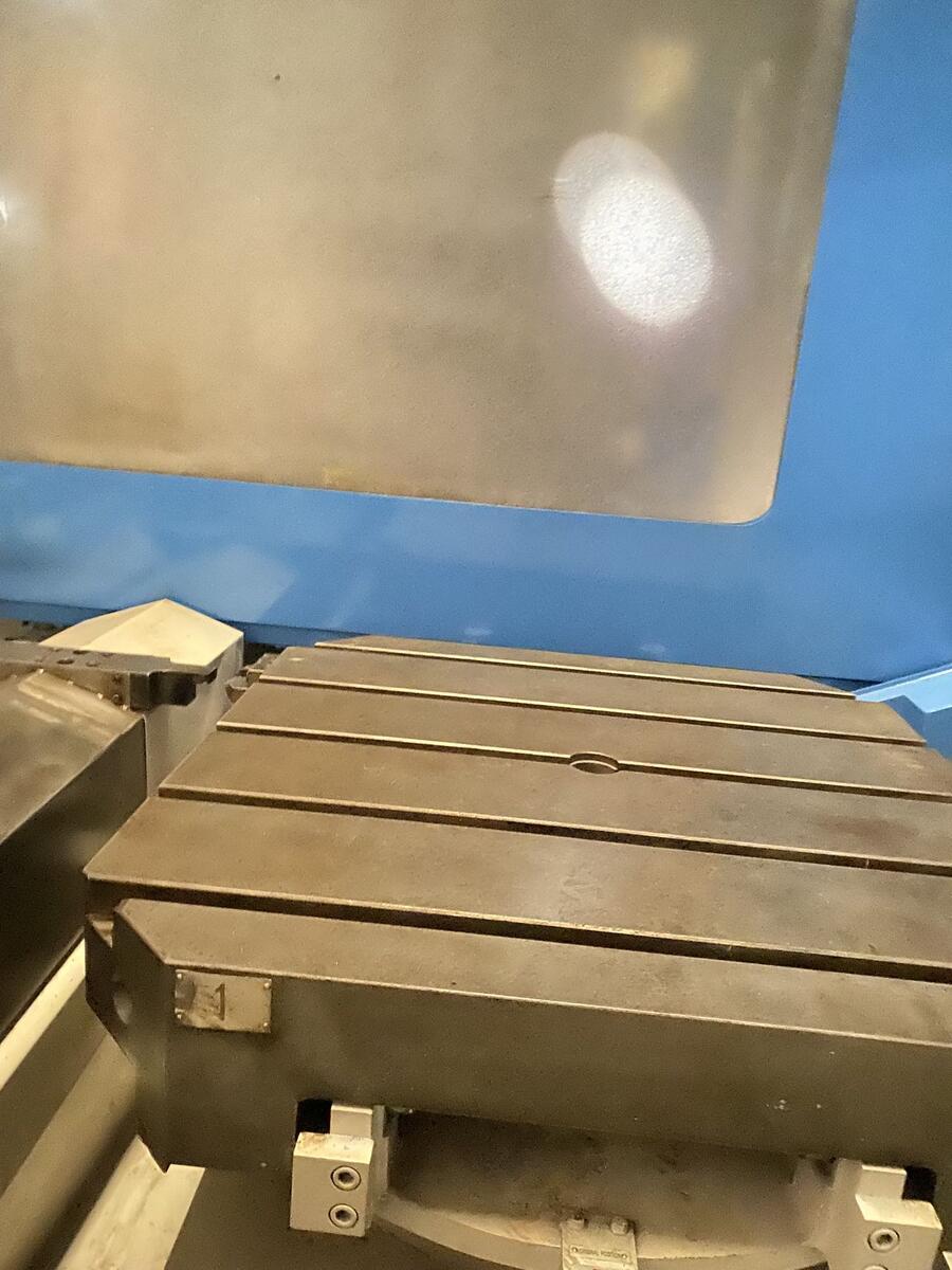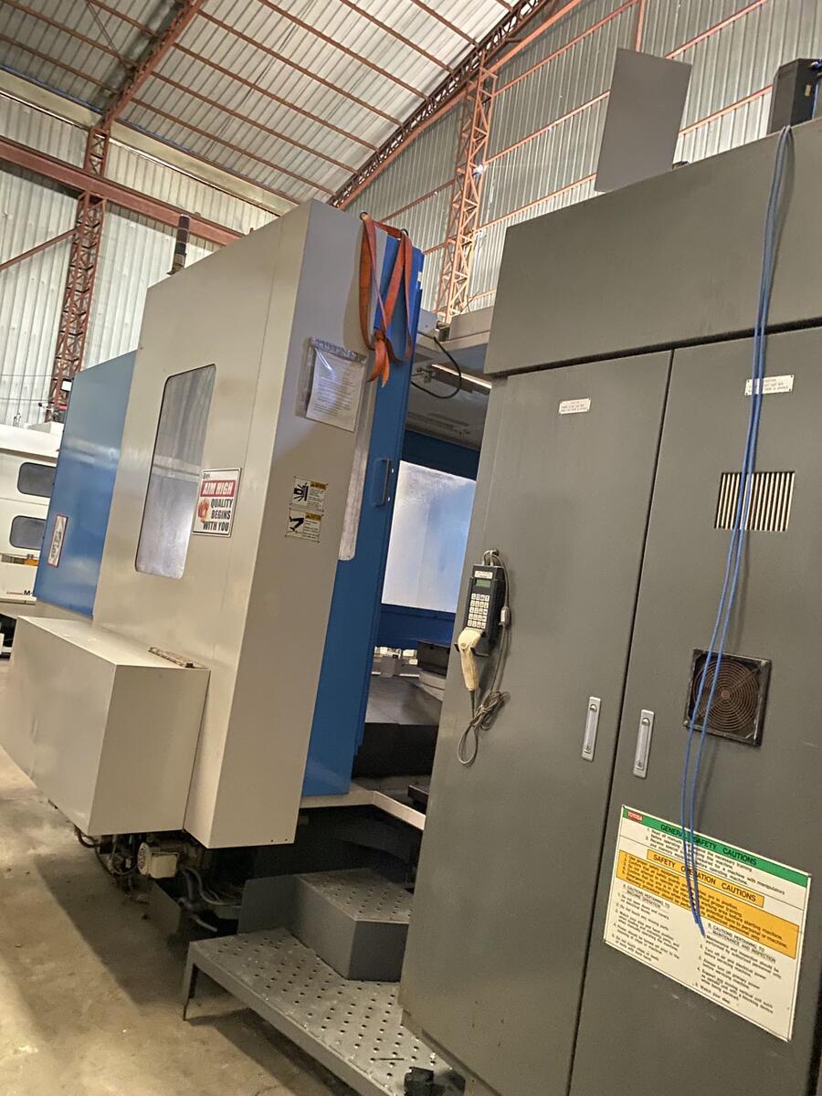丰田工机FH800卧加!卓越的Y轴设计,采用双丝杆、双电机驱动,高刚性加工!发那科:16i-MB系统XYZ行程:1350,1150,1150工作台0.001分度BT50刀柄,90把刀具刀库工作台800*800,负载承重:2500KG主轴转速6000转,主轴功率:37KW主轴高压中心出水,三轴硬轨!