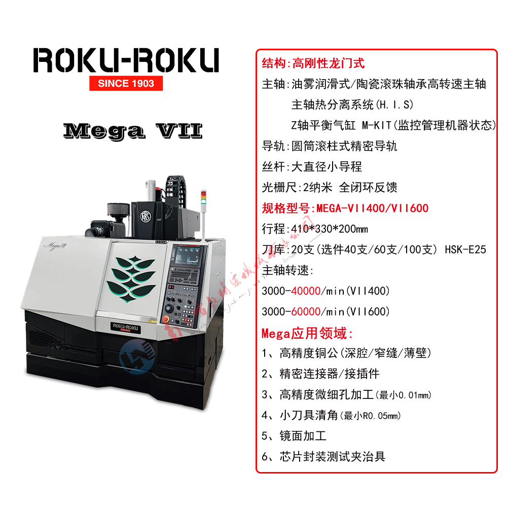 ROKU-ROKU碌碌公司以高速微细加工机为主,专注于小径刀具加工,镜面加工,微细孔等领域,以高精度,超微小径刀具,镜面加工著称于日本机床行业;与日本YSADA安田,Mitsui SEIKI三井精机合称日本机床界的三剑客,代表日本机床行业*高制造水平!
