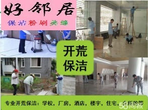 公司为大型工程开荒、地面清洗,学校,别墅,单位,宾馆,写字楼等提供室内保洁、家居开荒、地毯清洗、外墙清洗等保洁服务、我公司具有全新的服务理念、专业的技术水平和管理模式。高素质的施工队伍及广阔的清洗服务范围。培养了一批有素质的专业清洁队伍,为促进我公司向规范化、专业化、标准化方向发展,迈进了坚实的一步。真诚期待你的合作!