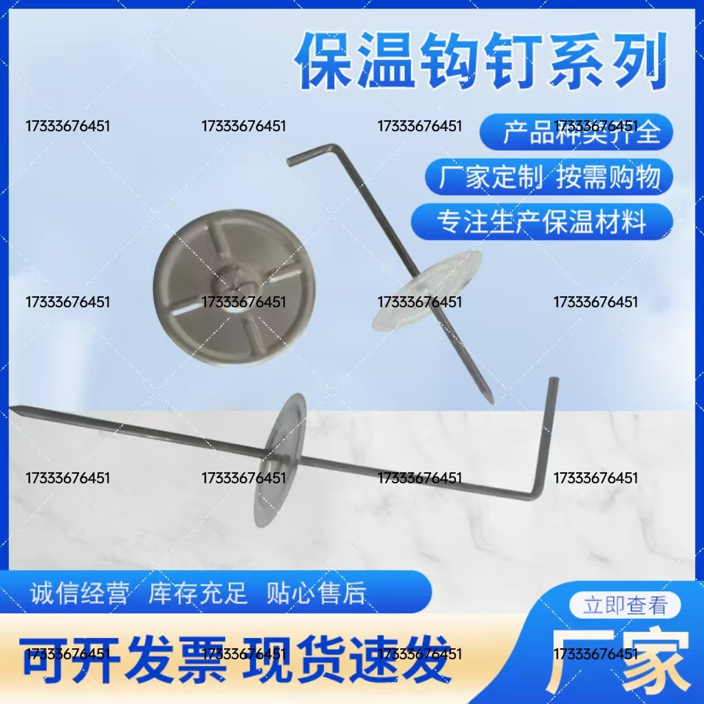 保温钩钉如何选用保温钉的长度大家应该不太了解吧!保温钉的规格选购其实是比较简单的,它是根据保温棉的厚度来选择的,比保温材料厚度长3-5公分就可以了,不要太短了,太短了会不轻易折弯影响施工速度。粗度根据