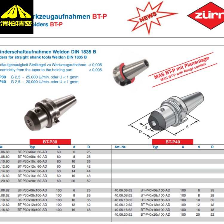 德国ZURN浮动铰刀柄浮动铰刀柄是解决精密铰孔偏差的利器,合理选型和使用可显著提升良品率。若需进一步匹配具体加工参数(如材料、孔径),可提供详细工况以便细化推荐方案。