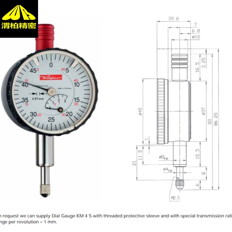 德国KAFER指针式千分表,KAFER千分表使用聚酰胺优质注塑外壳: