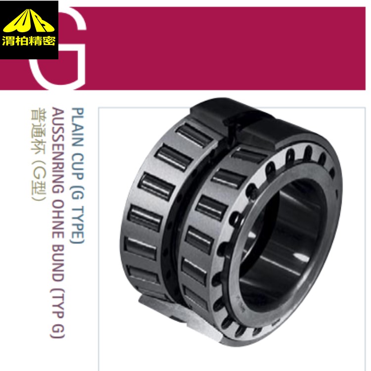 双列轴承能够提供接近相当于单列轴承容量两倍的承载能力,因此被应用于较重负荷的环境下。(光外圆)普通杯的外滚道为了允许热膨胀而使轴承处于‘浮动’状态。因此,如果需要额外的负荷时可以用P类轴承作为替代。G 型轴承可以进行预调整,构成GE 双列轴承。这可以通过调整轴承内圈滚道之间的隔圈以使组件具有所需的轴向间隙或预加负载。此项装配是基于对多个参数的选择,例如:速度,润滑条件和实际负荷。隔圈的宽(厚)度是在发货之前逐个地进行调整。