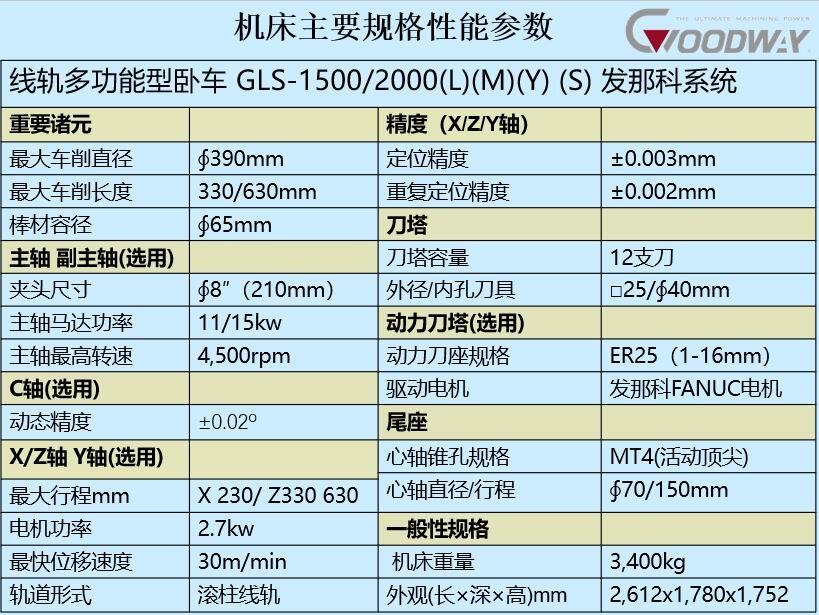 以下是程泰GLS-1500/2000+系列车床(可选 Y轴 副主轴 加长 铣削钻孔等功能) 基本规格介绍