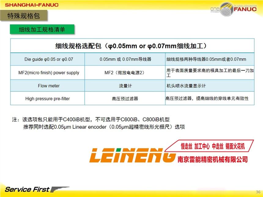 发那科慢走丝(FANUC慢走丝)型号:α-C400iC、α-C600iC、α-C800iB、发那科慢走丝所有机型均为日本原装进口,所有机型提供36个月保修。配合FANUC系统、温度补偿、固定料芯、三维坐标旋转、高精准自动穿丝、实现高品位切割加工。