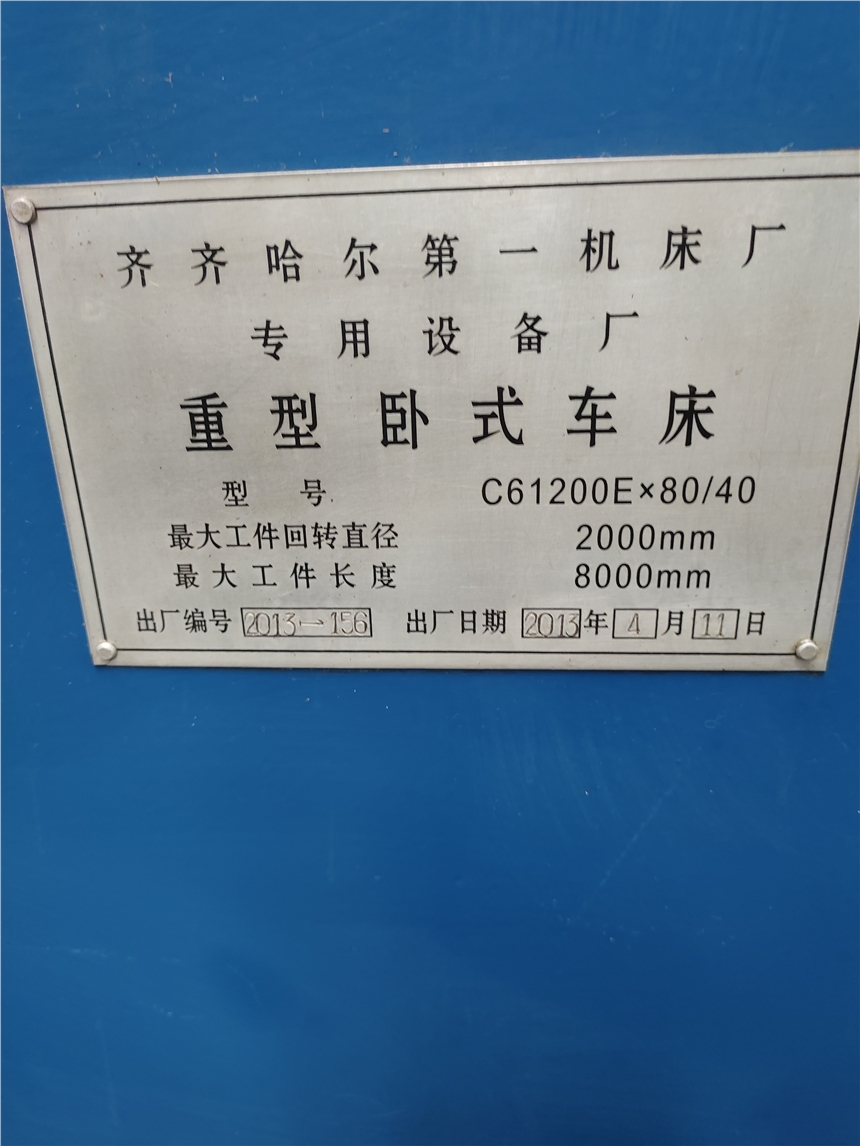 售:齐齐哈尔重型8米卧车型号C61200,导轨宽度1600mm加工长度8000mm卡盘直径2000mm双刀架,3导轨,承重40吨
