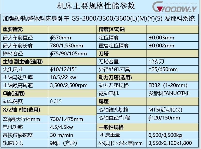 以下是程泰GLS-2800/3300系列车床 基本规格介绍 (可选 加长 铣削钻孔 Y轴等功能)