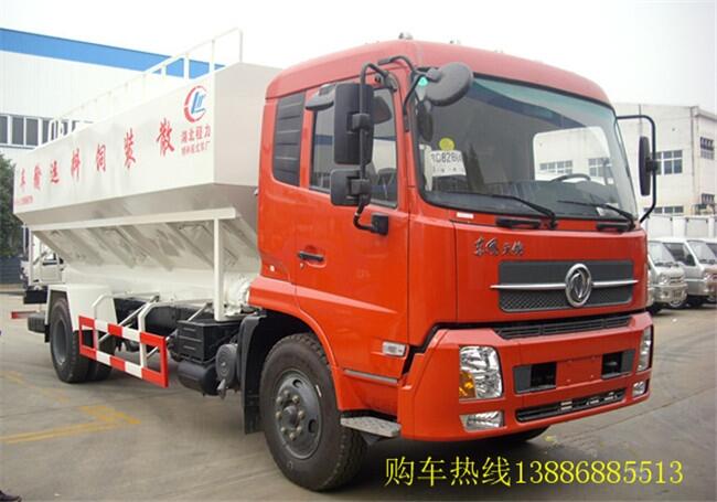饲料车采用东风汽车有限公司生产的二类底盘改制而成的电动绞龙散装饲料运输车。广泛适用于各种大、中、小型畜禽养殖场,饲料加工企业。动力采用三相电源或汽车动力驱动发电机发电(选装)的传动,用户可根据现场的实际情况灵活切换,使部分不具备三相电源的散养户也能完成饲料散装输送的。采用机械螺旋的卸料,卸料速度快,可连续作业,大大生产效率。罐体分隔成四仓,同时装载不同饲料;各部件结构简单、操作方便、经济适用、快捷,易于维修,售后服务完善,让您放心使用。