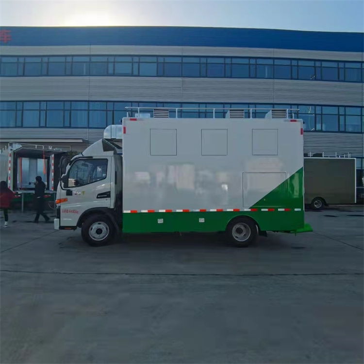 所生产的流动餐饮车集蒸、烤、冷藏存储、饮料制作、制作、休闲食品展示、车载动力、视频播放等功能为一体。