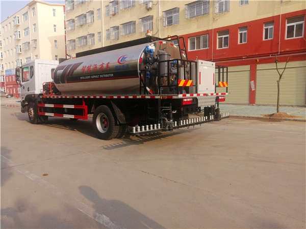 智能沥青洒布车由汽车底盘、沥青罐体、导热油加热系统、电气控制系统、液压系统、喷洒系统等。